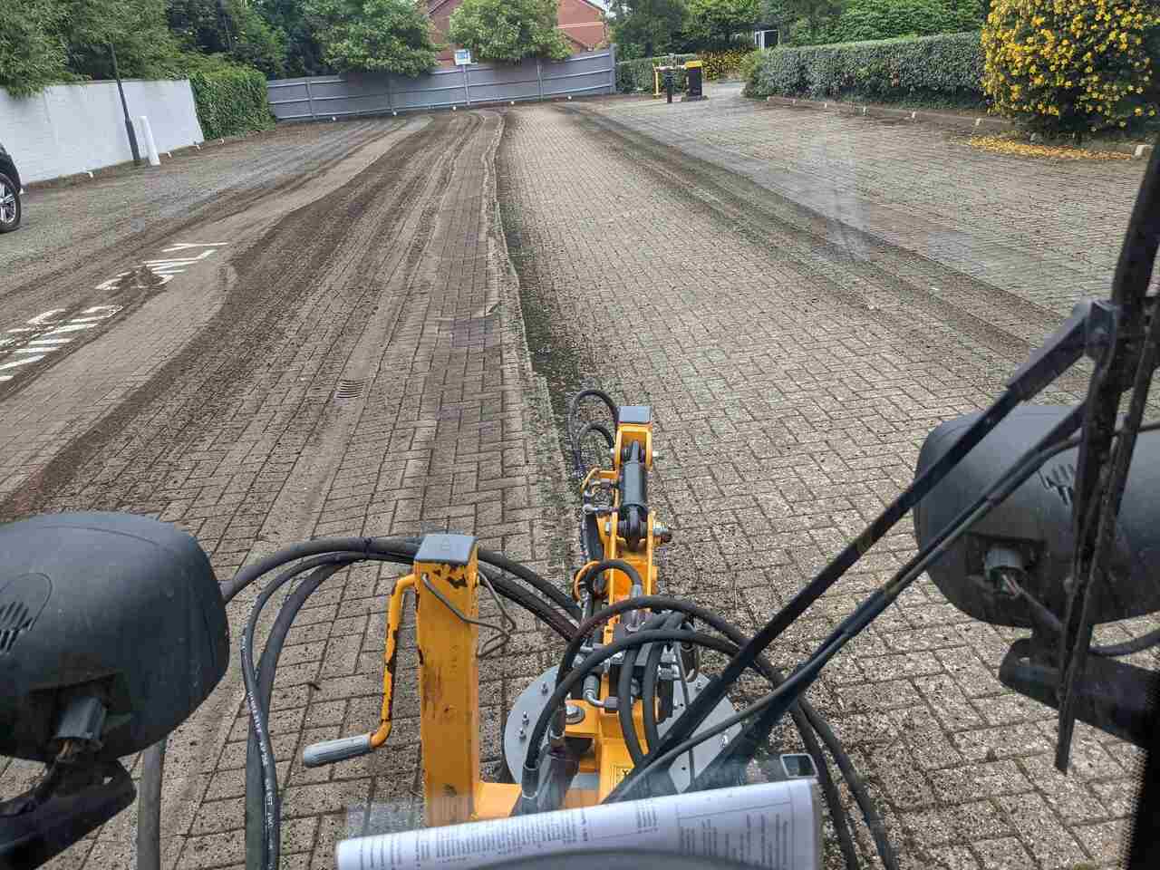 These machines are used to sweep out the moss and other debris caught in between the blockwork.